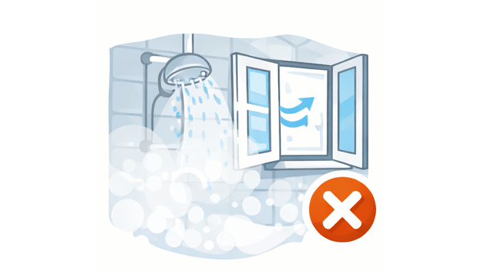 Öffnen Sie das Fenster nach dem Duschen oder Kochen vollständig, damit die feuchte Luft entweichen kann. Falls kein Fenster im Bad vorhanden ist, lassen Sie die Tür weit offen.